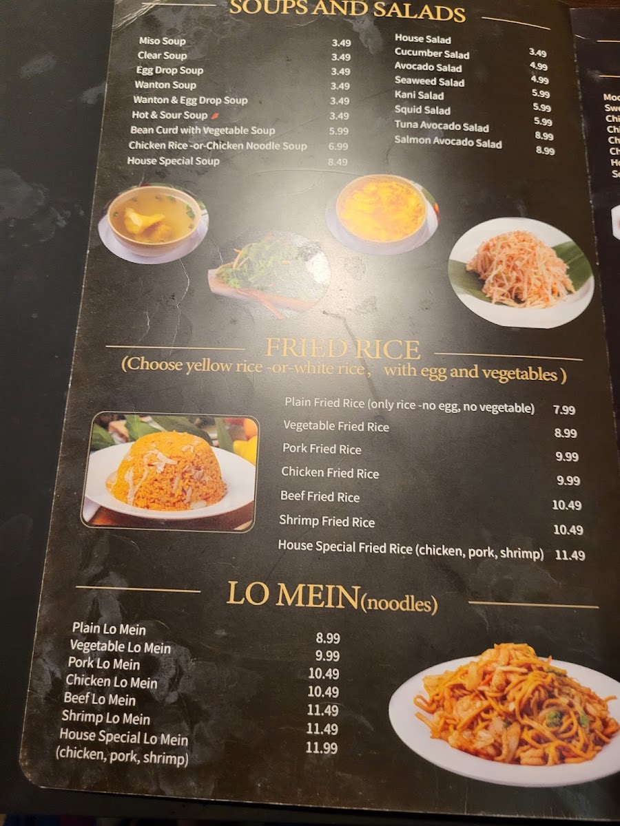 Spring mix salads include a variety of mixed greens, typically accompanied by a house ginger dressing.